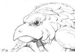 An aarakocra, as depicted in Dragon #124 (1987). Art by Jeff Dee.
