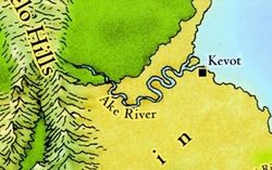 "The Ake is "a winding waterway from the Kelo Hills into the Kabrevo, the Ake forms a small delta where it passes Kevot."[1]"