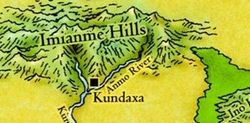 The Anmo flows almost directly southwest out of the eastern Imianme Hills with very few bends. Kundaxa sits at the confluence where the Anmo meets the Kumo to continue flowing south toward the coast.[2]
