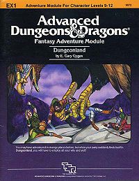 Dungeonland (EX1) is a 1983 adventure for first edition, written by Gary Gygax. It is an adaptation of Lewis Carroll's 1865 novel Alice's Adventures in Wonderland, with the various characters from the book translated into AD&D terms.[1][2] [3]