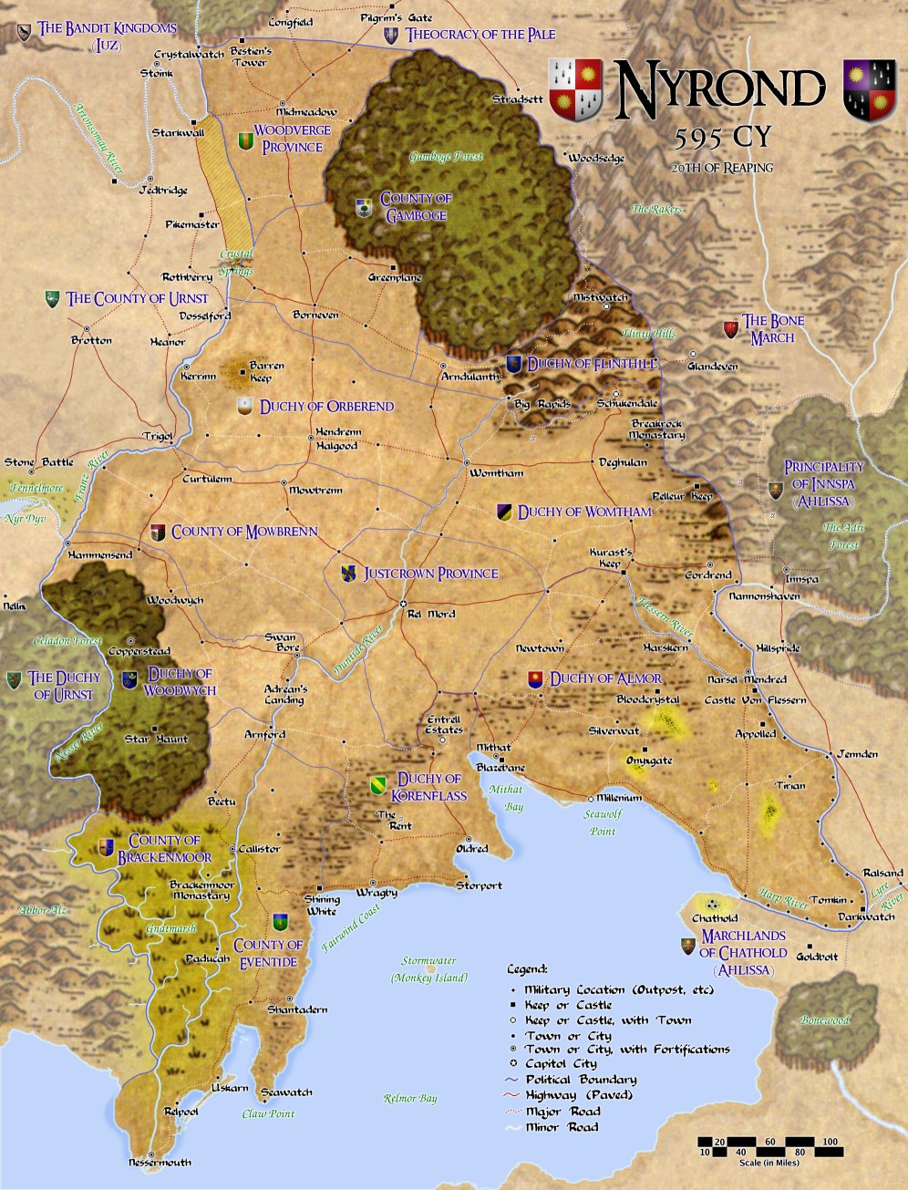 The Kingdom of Nyrond depicted for the Living Greyhawk region for Nyrond, published in the "Nyrond Gazetteer" and on the LG Nyrond Triad's website.. (2005) Artist uncredited.