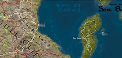 Roland is located off the coast of the Solnor Ocean, just south of the North Kingdom. The city is built far back from the natural harbor in the Bay of Gates, which means that anything brought in by sea has to be pulled down the smooth path between the city and the harbor. The harbor is a natural anomaly, being surrounded by cliffs ranging from 150 to 400 ft tall, yet still being deep enough for even the largest keeled ships to enter easily. The high cliffs combined with the city being set back means that it is virtually immune to maritime attacks.