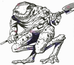 ![]() A grung, as depicted in Monstrous Compendium Greyhawk Adventures Appendix (1990). | |