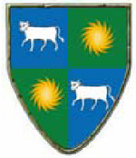 Quarterly: I and IV: Vert, the Sun of Aerdy Or, II and III: Azure, a bull passant argent.
