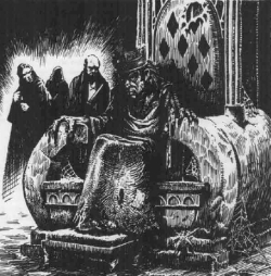 Though it is clear that it is "only a matter of time" before Ivid's wasting disease will kill him, Karloock and Baalzephon make plans for Ivid's death and "will certainly not allow this fact to be known. .... [they] will do their best to maintain the pretense that Ivid is still alive for as long as they can."[3]