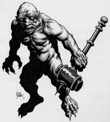 Kostchtchie appears as a bandy-legged, yellow-skinned, and (other than his eyebrows) hairless brute, who carries a magic hammer which he squashes his victims with. In the game's first edition, Kostchtchie was a mere seven feet tall. In third edition, he is now more than 20 feet tall.