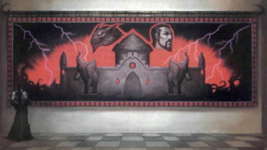 ![]() The tapestry in Maure Castle depicting the Lost City of the Elders, as shown in Mordenkainen's Fantastic Adventure (1984). Art by Jeff Easley. | |
