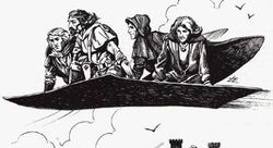 Yrag, Mordenkainen, Bigby, and Riggby, as depicted in Mordenkainen's Fantastic Adventure (1984).