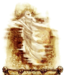 Pale Night's form is incorporeal, and she appears as an empty flowing white shroud with the suggestion of a shapely female body underneath. It is said that Pale Night's true form, as befits an obyrith, is so hideous and terrifying that reality itself rejects it. The shroud that she "wears" hides it. To glimpse Pale Night's true form risks madness and death.