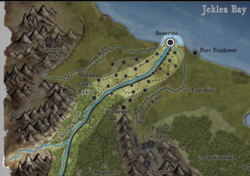 "Thundering down from the Hellfurnaces, crashing falls and deadly rapids exemplify this frothing white-water river. The two largest falls, the Crushwater (5 miles from the Thunder River) and Jairador’s Leap (10 miles from the Thunder River), bar the waterway from any substantial use in commerce or travel. Seemingly just for that reason, a semi-permanent encampment of monks, the Speakers of the Roaring Way, reside in an area of numerous smaller cascades and cliff-side grottos between the two greater falls."[1]