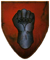 Stonehold's coat of arms is blazoned thus: Gules, a sinister hand of stone couped above the wrist, clenched, proper.
