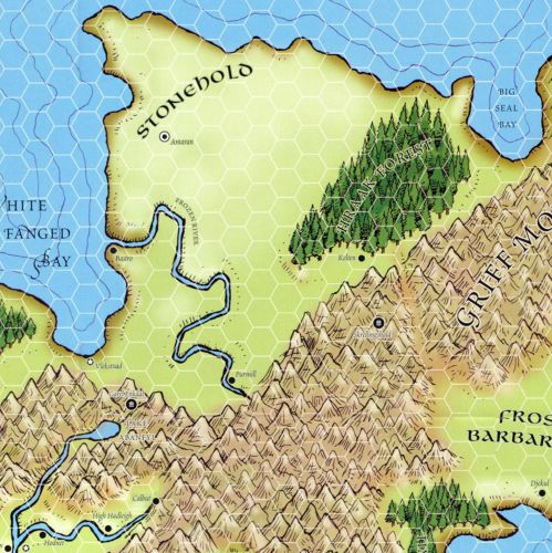 Modern Stonehold is generally located in the northeastern portion of the Flanaess. It is situated at the base of the Thillonrian Peninsula, bounded by the Griff Mountains to the east and south, and the Icy Sea to the north and west. The Hraak Forest at the base of the Griffs is claimed by the people of Stonehold as well.