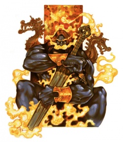 Fire giant priests are normally architects or smiths. Those few who aren't are charged with the responsibility of keeping the rest of the tribe productive, largely by recounting inspirational tales.