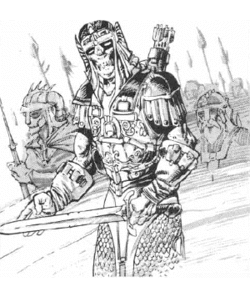 "Swordwraiths are consumed with the desire to do battle. They fight with all the skill they had in life. Swordwraiths congregate in legions just like they did in life. They plan raids and assaults on any nearby settlement, just to satisfy their urge for war. Each engagement has an objective, but only to give focus and direction to the attack. Looting and pillaging is never the way of the swordwraiths. They glory in the battle, not the plunder. They will attack merchant caravans as readily as they will well-armed adventurers."[4]