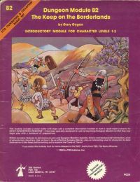 The Keep on the Borderlands (B2) is a Dungeons & Dragons adventure by Gary Gygax, first printed in December 1979. It is designed for use with the Dungeons & Dragons Basic Set. Although also available for separate sale, it was included in the 6th to 11th printings (1979-1982) of the Basic Set. The cover of the first printing included the notation, With minor modifications, it is also suitable for use with ADVANCED DUNGEONS & DRAGONS; this was removed from later printings. A novelized version of the adventure was published in 1999.