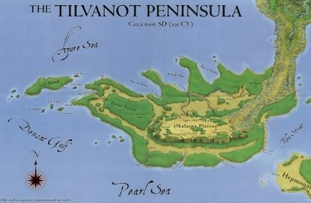 The Tilvanot Peninsula is an expanse of land in the southeasternmost portion of the Flanaess, encompassing the Spine Ridge, the Scarlet Brotherhood, and the southern regions of the Vast Swamp.