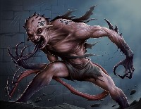 In his true form, which he avoided exposing to others, Tsojcanth is over nine feet tall with mottled ash-gray skin, a barbed tail, and a snakelike tongue. His eyes are pitch black.