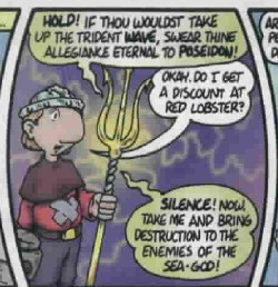 According to one legend, Wave was forged by cyclops giants imprisoned on the distant island of Thunderforge by agents of a god of the ocean. The exact name of the deity varies from legend to legend: some say it was Procan, others say Blibdoolpoolp, Eadro, Poseidon, or Sekolah. Wave was one of a pair of tridents forged by the same master. Its companion, Surge, was a lawful neutral trident dedicated to another deity, an eel-like demigod called Anguileusis.