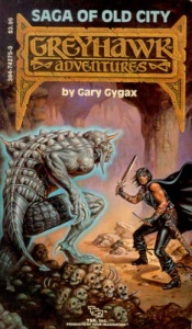 Saga of Old City by Gary Gygax (TSR, 1985); Cover art by Clyde Caldwell. The first Greyhawk Adventures novel, and the first featuring "Gord the Rogue".