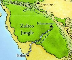 "The jungle south of the Azteotl hills is considered the Zolteo jungle, named for the Olman goddess of pleasure and vice; the Olman claim that she planted this rich jungle to test man’s temperance. Largely controlled by the Ichamamna yuan-ti. it is also a home to tasloi, bugbears, and various snakelike monsters.[2]"