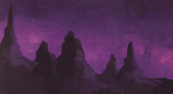 A massive deposit of Lacofcite appears in the uppermost, central portion of the Vault, as well as thousands of tiny deposits[3]. The effect makes it appear as if there were a strange plum-colored moon and stars.[2][3] 1,000 fathoms above ground-level, its light would be something akin to dim moonlight of a "wrong"-colored full moon.